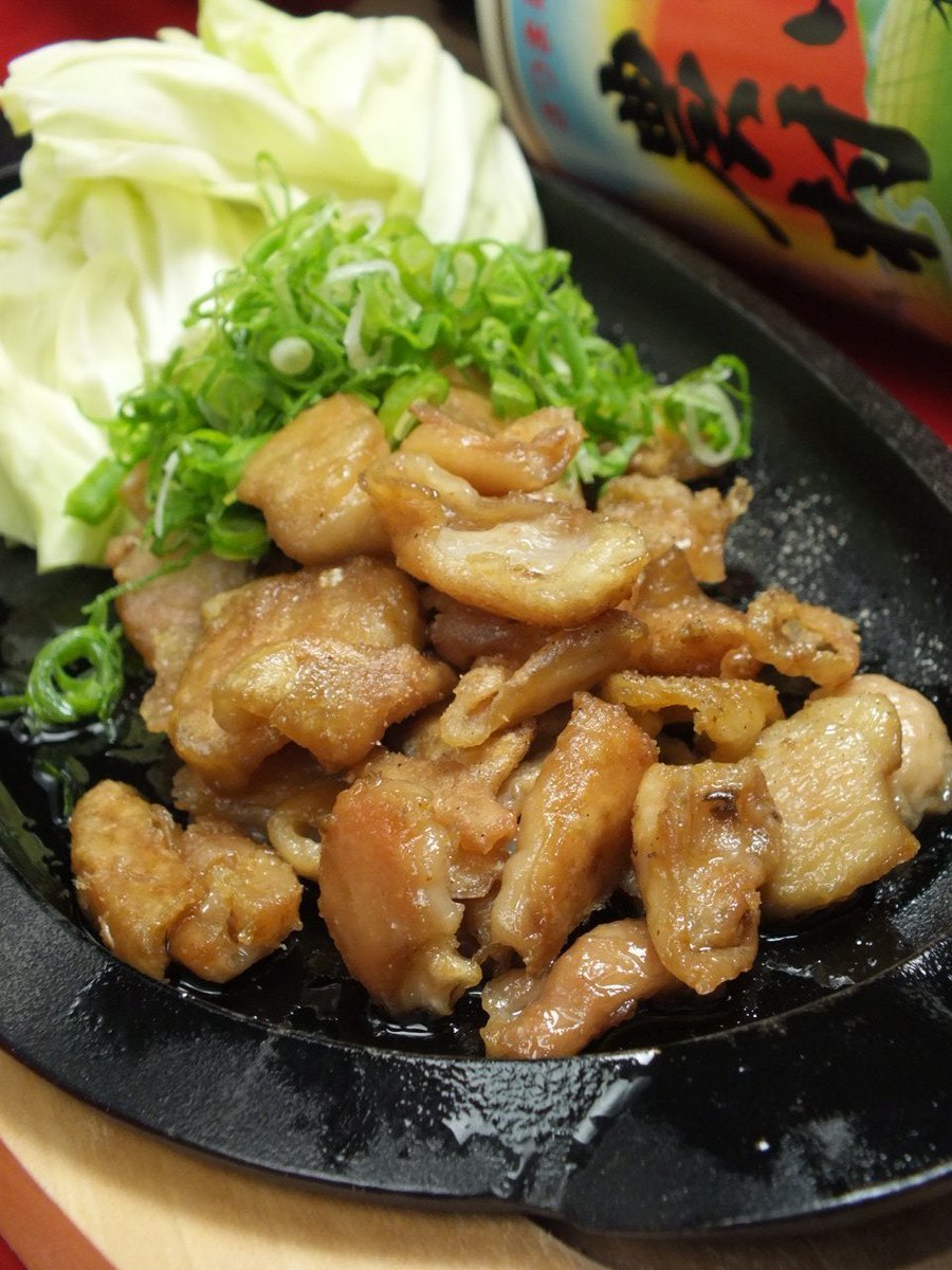 アツアツの鉄板で焼かれたとり皮はカリカリかつジューシー😋
