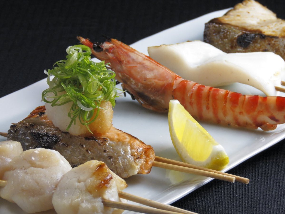 豪華な海の幸が串焼きに!車海老やホタテなども贅沢に使用しており、大満足間違いなしの盛り合わせです。