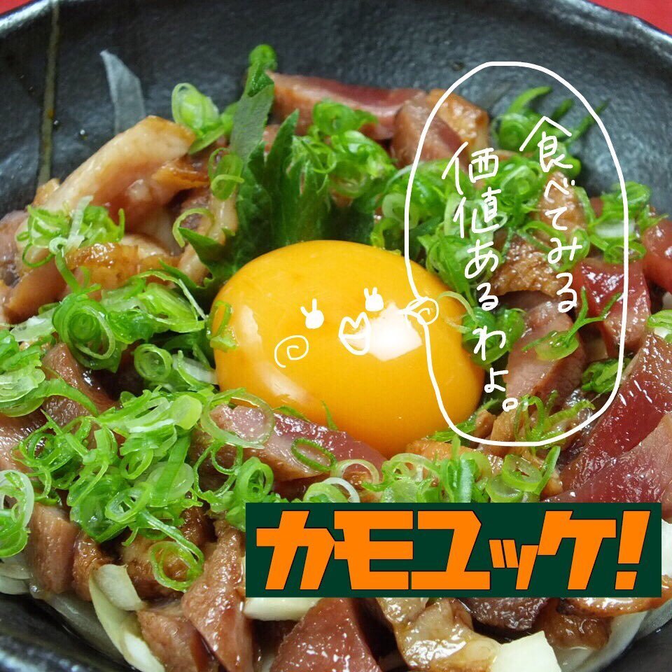 自家製タレと地鶏の卵 そして新鮮な鴨が織りなす絶妙なハーモニーがお楽しみ頂けます。長芋とタマネギのシャキシャキとした食感もたまりません!。