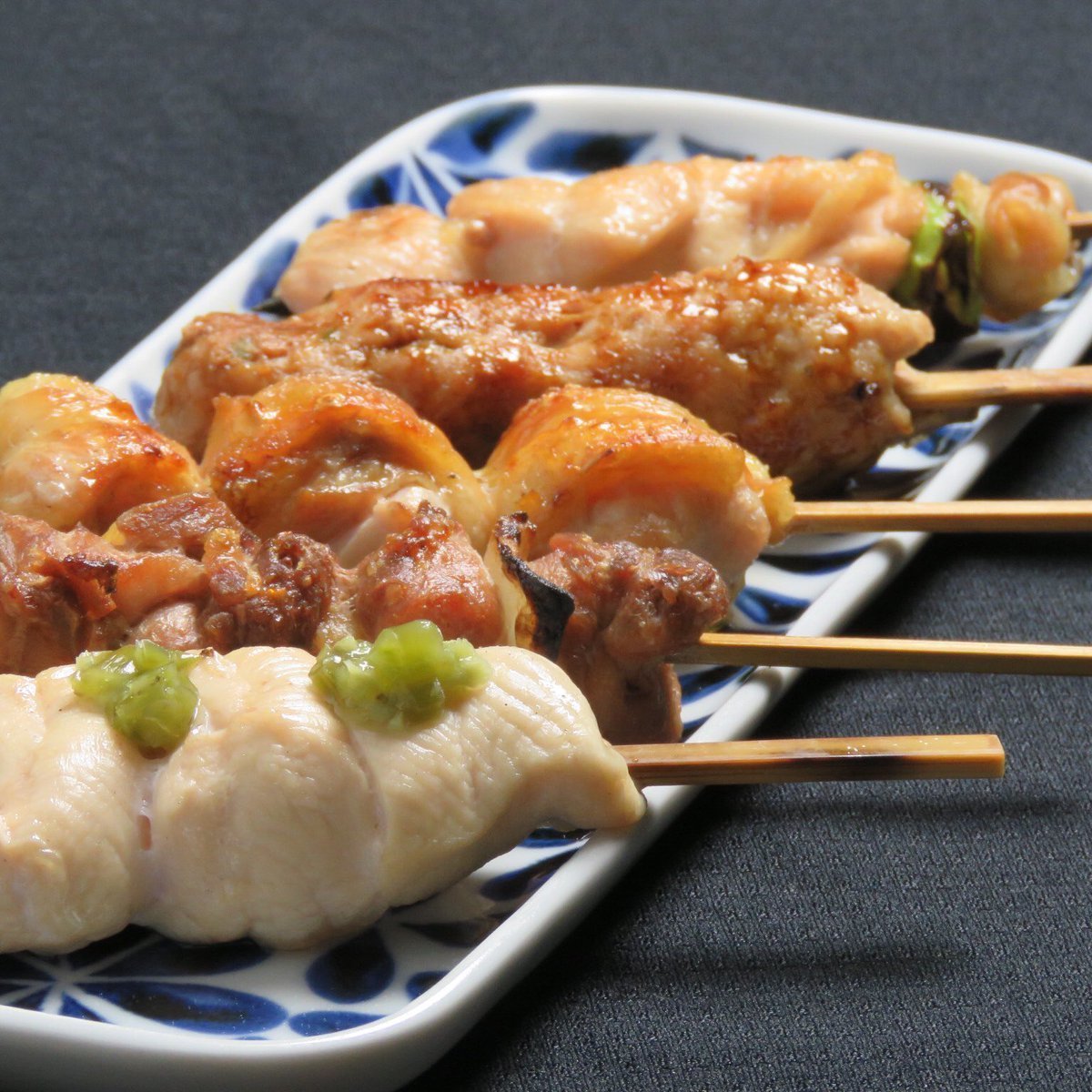 伯方の塩をブレンドした自家製塩を使用❗️店長厳選の五種の焼き鳥本来の味を炭の香りとともにお楽しみください😊 お持ち帰りもできます🚗